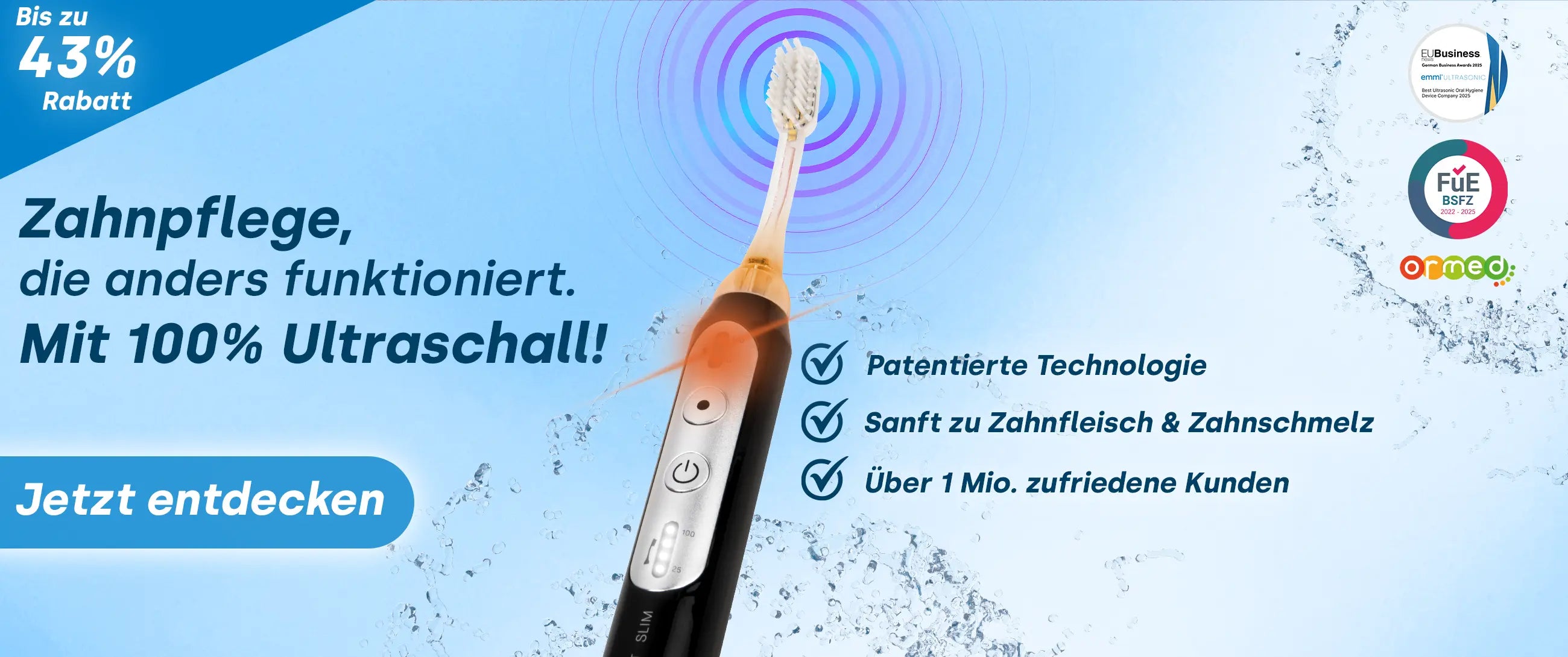 Ultraschallzahnbürsten helfen bei einer erschwerten Zahnreinigung enorm. Die Kraft, die Sie sonst zum Zähneputzen aufwenden müssen, übernimmt der Ultraschall.