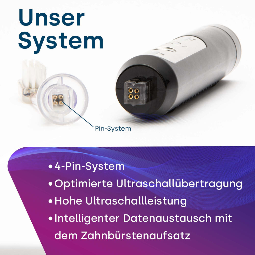 Die emmi-dent Slim Aufsätze sind speziell entwickelt, um die revolutionäre Ultraschalltechnologie der emmi-dent Slim optimal zu unterstützen. Mit ihrem intelligenten 4-Pin-System und der präzisen Passform sorgen sie für maximale Ultraschallübertragung und eine besonders gründliche, sanfte Reinigung.