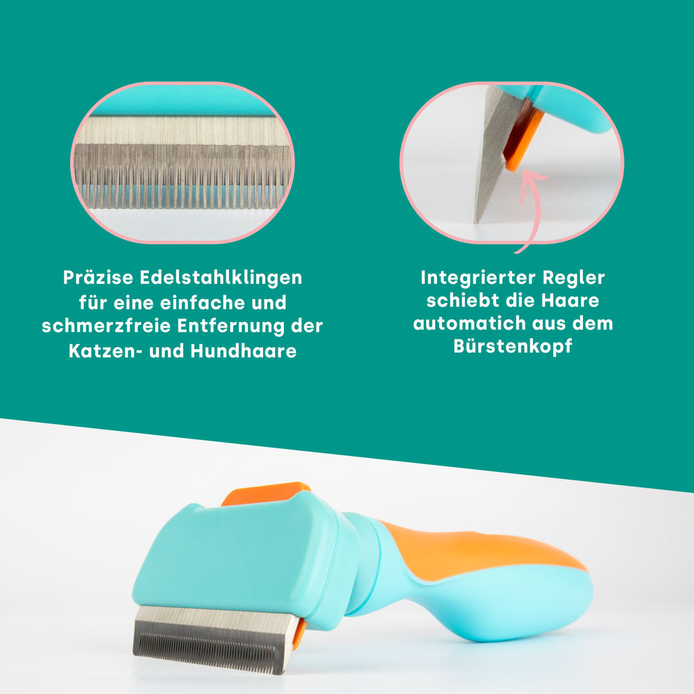 • Reduziert Haarausfall um 90%: Durch die effiziente Entfernung von Unterwolle wird der Haarausfall um bis zu 90% reduziert, was eine sauberere Umgebung und weniger Haare auf Kleidung und Möbeln bedeutet.