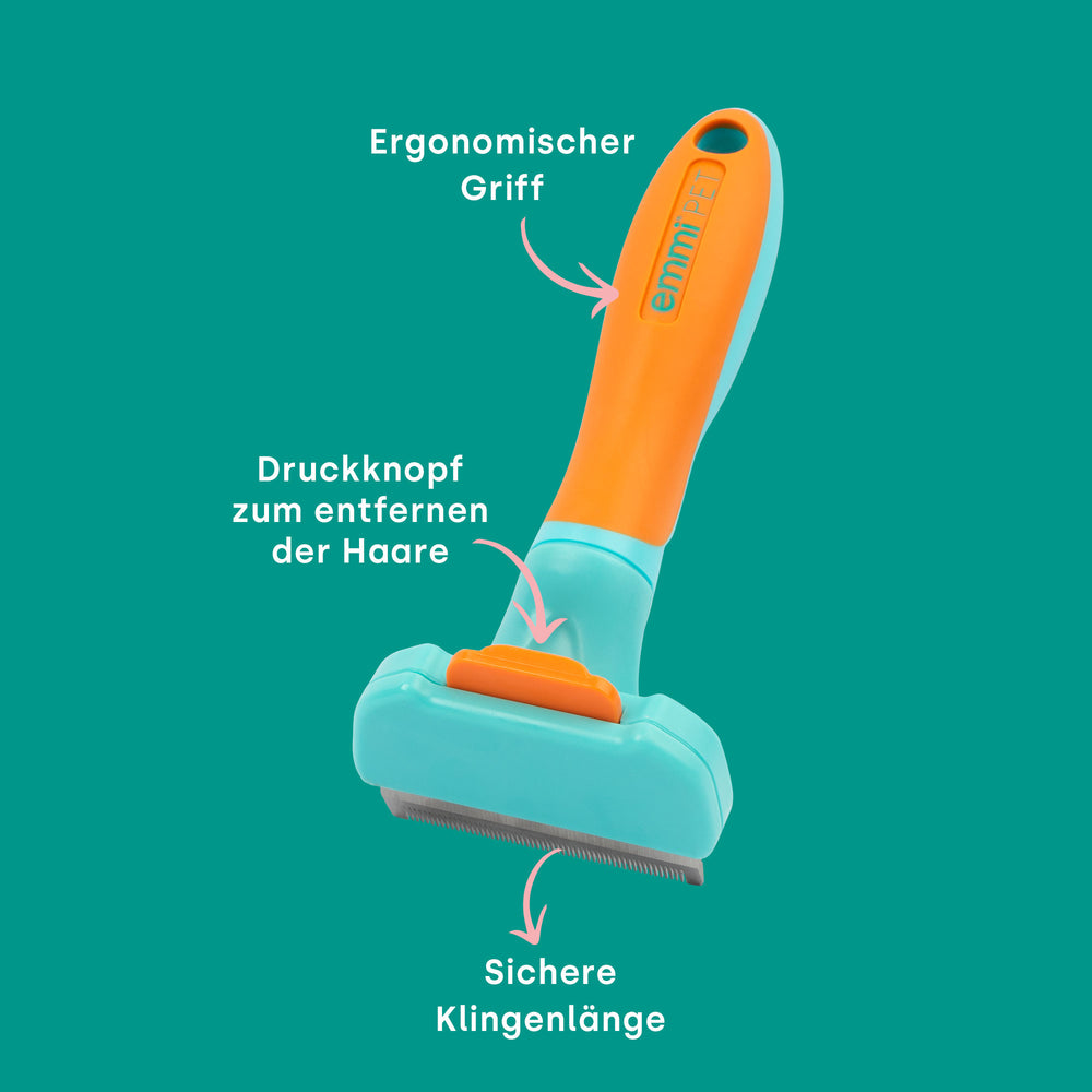Während des Fellwechsels und bei hoher Belastung durch Pollen und Staub ist eine gründliche Fellpflege sehr wichtig. Besonders im Frühjahr und Herbst erleichtert eine regelmäßige Anwendung den Fellwechsel. Der emmi-pet Katzenkamm und Hundekamm eignet sich optimal für eine effektive und sanfte Fellpflege. Die Edelstahlkante dringt tief in das Deckfell deines Haustieres ein und entfernt Unterwolle, Verknotungen und Verfilzungen gründlich, ohne zu ziepen und ohne die Haut deines Haustieres zu verletzen. Die Vielseitigkeit dieser Fellbürste macht sie zur idealen Wahl für Tierbesitzer, egal ob für kleine Haustiere oder große Pferde. Regelmäßiges Bürsten lässt das Fell glatter, weicher und glänzender erscheinen. Gleichzeitig sorgt die Tierhaarbürste für eine wohltuende Massage bei deinem Haustier und fördert die Durchblutung. Die emmi-pet Unterfellbürste macht aus aufwendiger Fellpflege ein entspanntes Wellness-Programm.