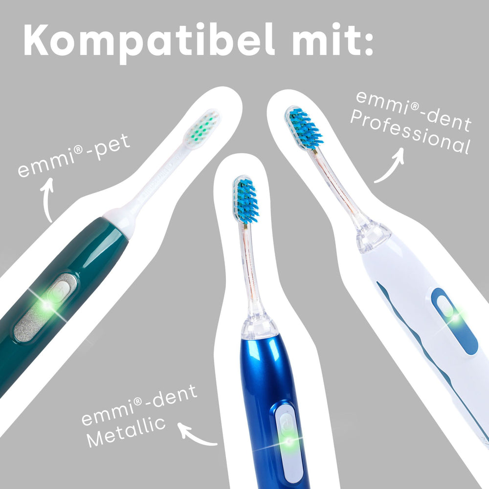 Maximal alle zwei Monate verwenden. Zu starke Reibung kann den Zahnschmelz schädigen. Bei hartnäckigen Ablagerungen die Reinigungszeit mit den emmi-dent Geräten für die Zahnreinigung und Mundhygiene mit 100% Original Ultraschall nach Bedarf erhöhen.