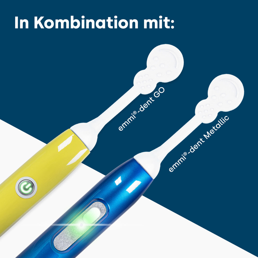 Bitte beachten Sie, dass die Ultraschall Aufsteckbürsten der emmi-dent Metallic oder Go ausschließlich für die Zahnreinigung und Mundhygiene mit diesen Modellen verwendet werden können.