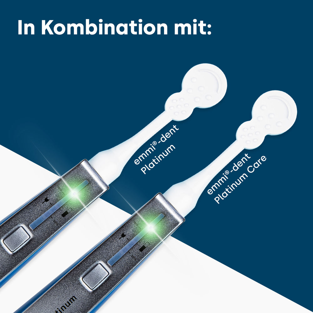 Bitte beachten Sie, dass die Ultraschall Aufsteckbürste der emmi-dent Platinum ausschließlich für die Zahnreinigung und Mundhygiene mit dem Premium Modell emmi-dent Platinum verwendet werden können.
