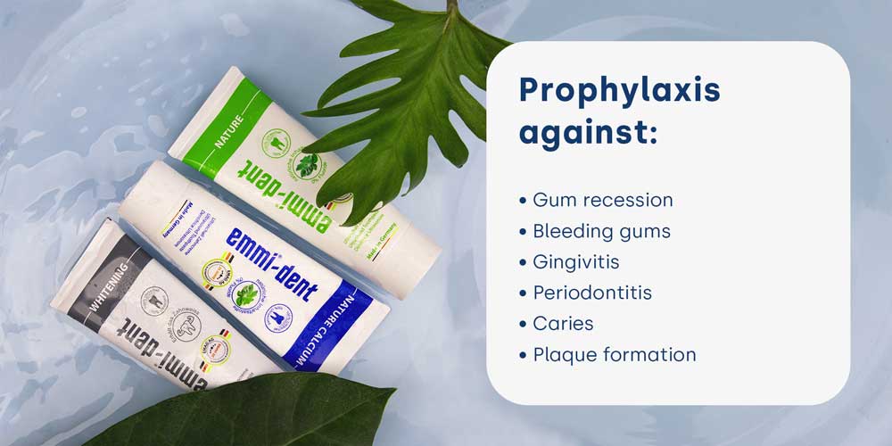 Regular use of our toothpaste helps to maintain the natural whiteness of the teeth and prevent discoloration that can be caused by everyday influences such as coffee, tea or tobacco. In addition, emmi-dent toothpaste ensures fresh breath and a clean feeling in the mouth.