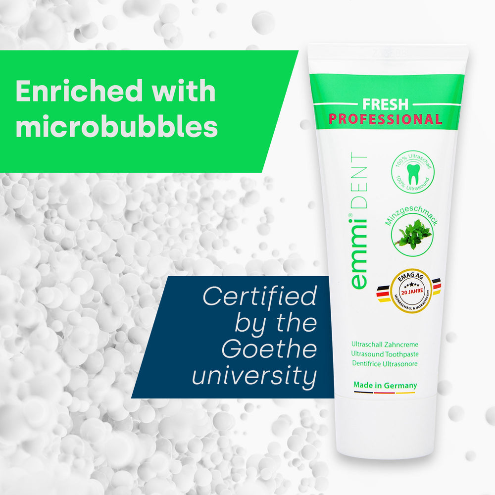 emmi-dent is a pioneer in ultrasonic dental care and stands for outstanding quality and innovative technology. Our Fresh Ultrasonic Toothpaste was developed by experts and clinically tested to offer you an incomparable cleaning experience. Trust emmi-dent and experience the difference!
