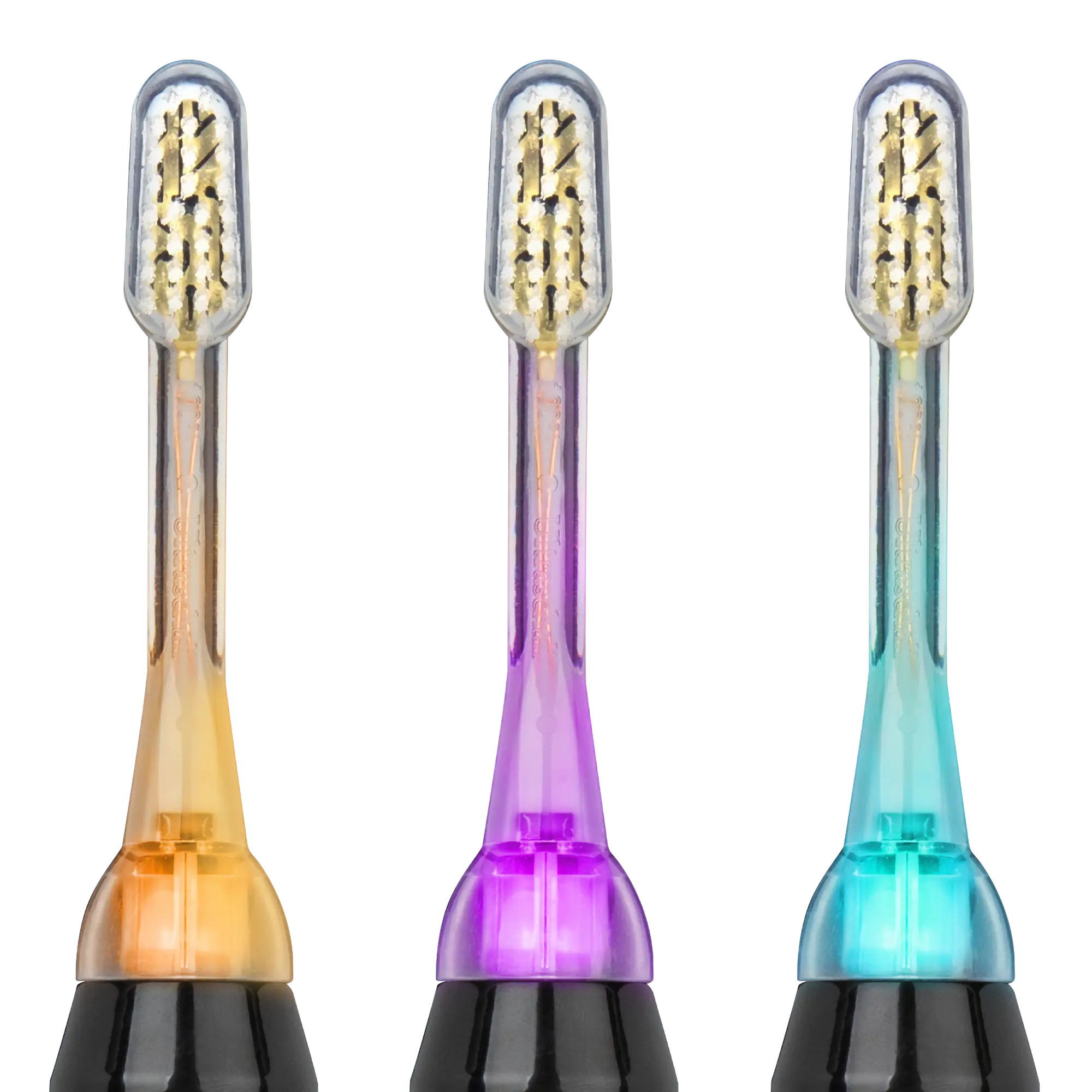 Our ultrasonic toothbrushes are equipped with intelligent brush heads that contain a patented piezo chip to provide outstanding cleaning performance and effectively remove impurities and deposits in the mouth.