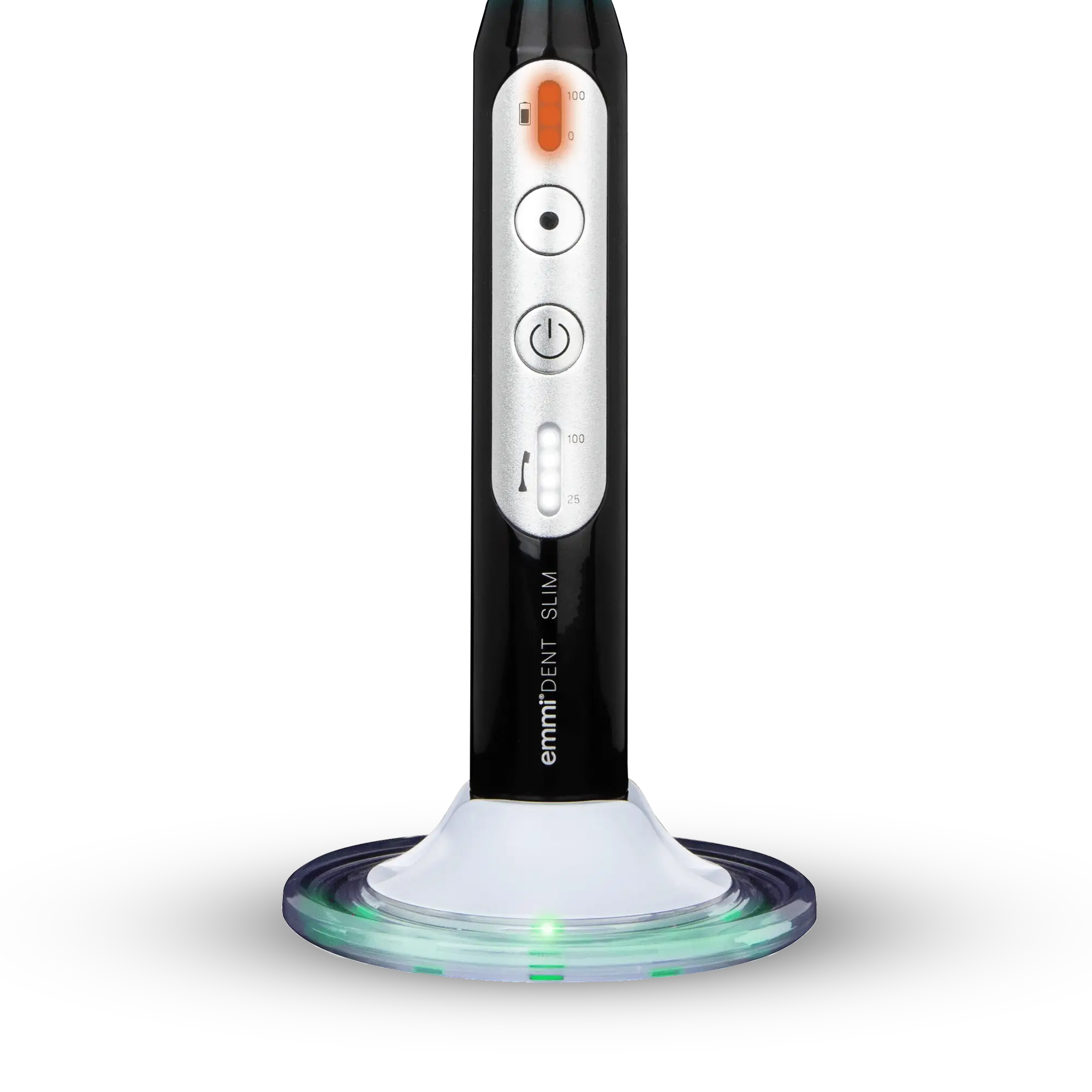 Thanks to the ergonomic, slim design of the emmi-dent Slim, the ultrasonic toothbrush fits comfortably in the hand and is smarter and more powerful than ever before.