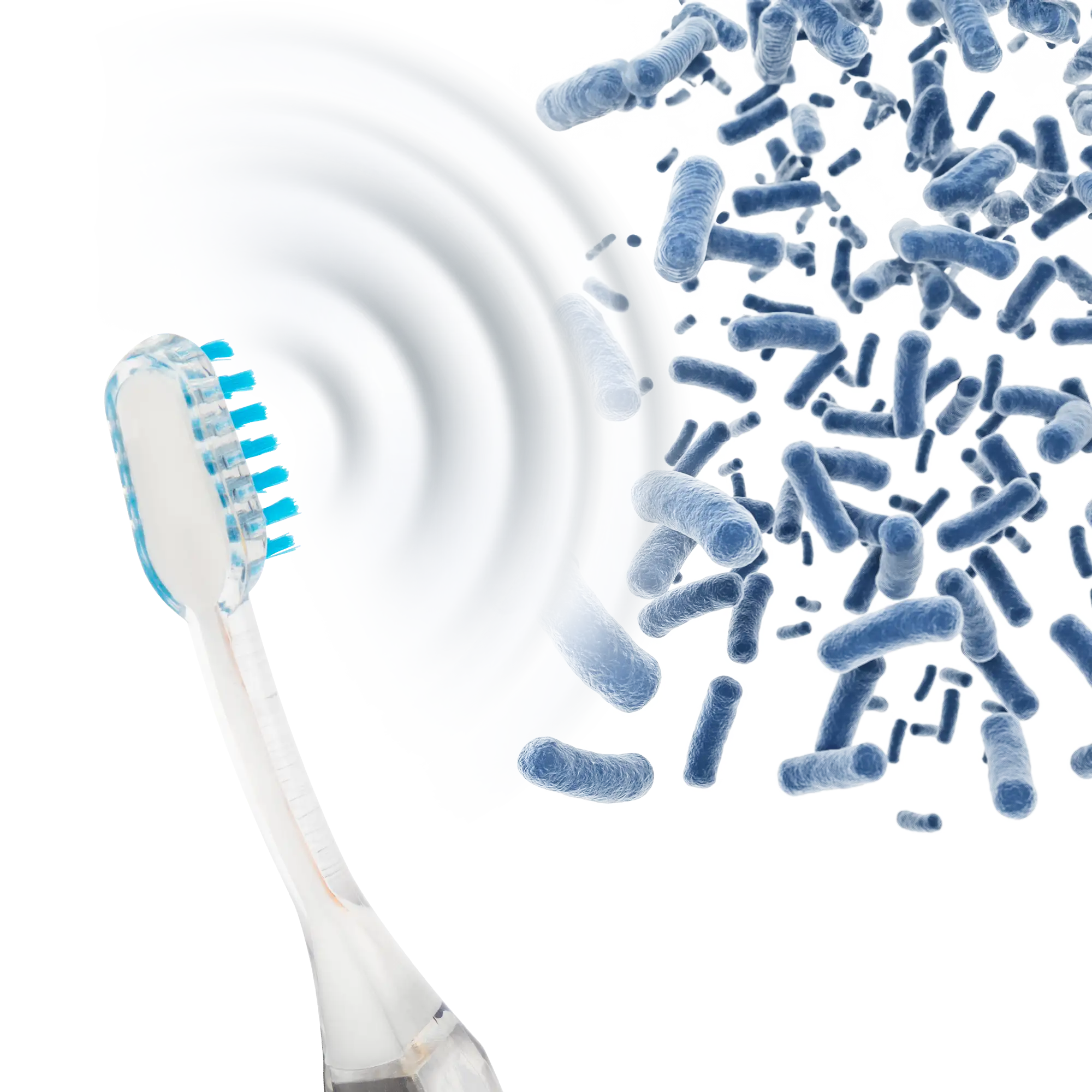 Toothbrushes that work with ultrasound have been revolutionizing tooth brushing since 2013. The decisive advantage over traditional manual toothbrushes or electric toothbrushes is that ultrasonic toothbrushes work almost contact-free and without mechanical movements. This makes cleaning particularly gentle and yet reliably thorough.