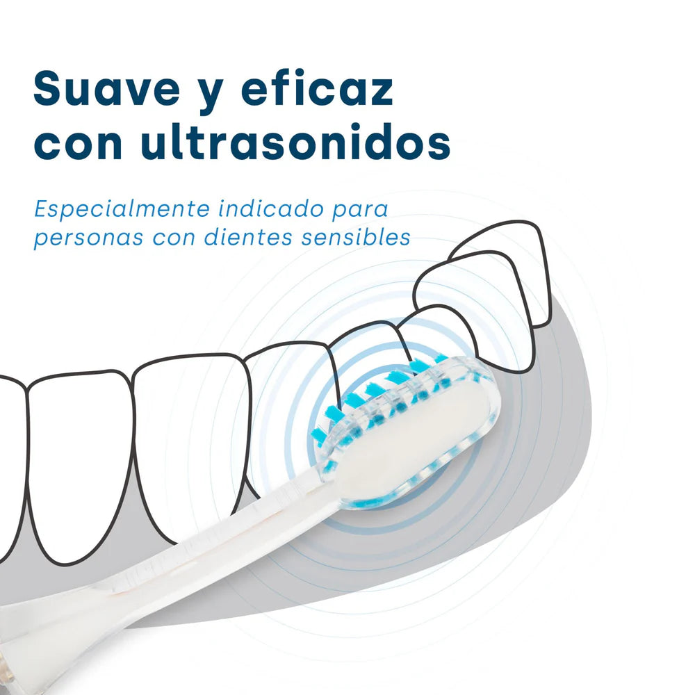 - Limpieza a fondo: La tecnología ultrasónica elimina la placa y las bacterias sin necesidad de cepillado mecánico.
