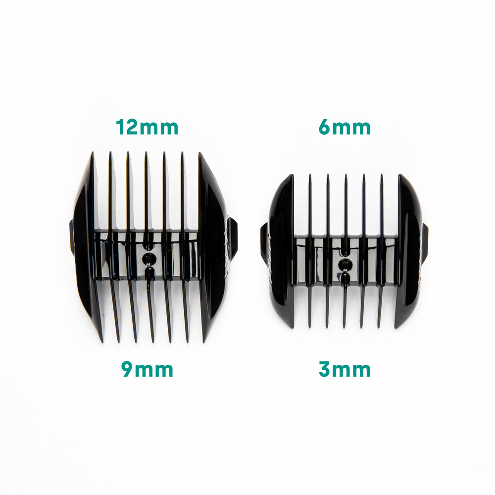 • Peines de fijación ajustables: incluye peines para longitudes de corte de 3/6 mm y 9/12 mm para ajustes precisos