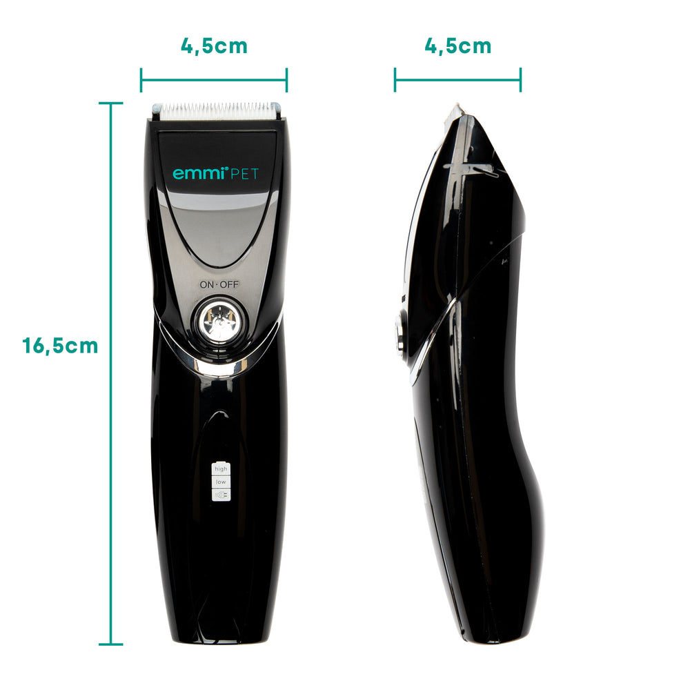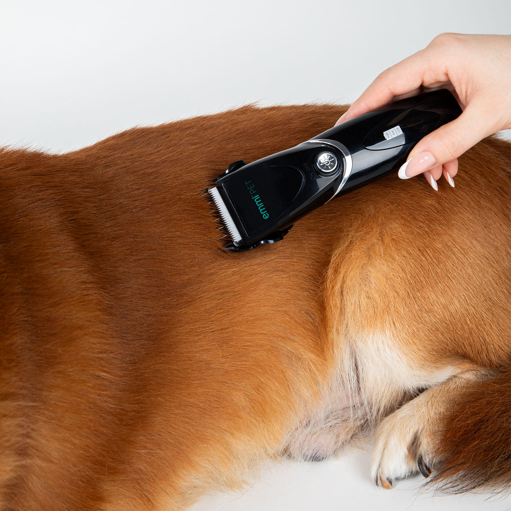 Pre-cepillado, esquila y arreglo personal, así de fácil es utilizar nuestra cortadora. Antes de cortar el pelo, cepille bien el pelaje de su mascota para eliminar nudos y enredos. Esto hace que el corte sea más fácil y garantiza un resultado uniforme. A continuación, pase la cortadora lentamente y de manera uniforme sobre el pelaje. La cortadora de pelo dispone de peines de 3/6 mm y 9/12 mm, que permiten un ajuste preciso y un trabajo fino dependiendo de la longitud de corte deseada. Después de la esquila, utilice un champú suave para cuidar el pelaje y evitar la irritación de la piel.