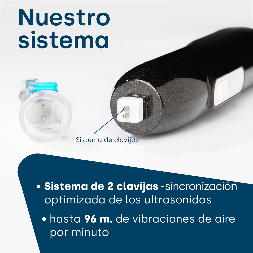 El modelo Metallic es el modelo estándar de la gama y ofrece una temporización ultrasónica optimizada, adecuada tanto para niños como para adultos. Con un sistema de 2 pines y una duración de batería de 12 días, combina eficiencia con facilidad de uso.