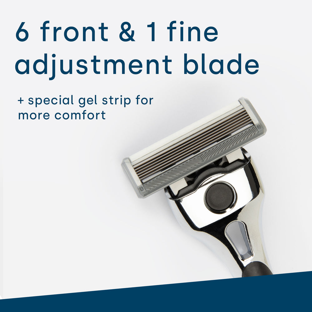 Grazie al loro design innovativo, le nostre lame di ricambio possono essere inserite facilmente e in sicurezza nel nostro rasoio a 7 lame. Con un solo movimento puoi rimuovere le vecchie lame e montare quelle nuove, senza bisogno di attrezzi aggiuntivi. In questo modo potrai continuare a raderti in modo rapido e semplice, senza perdere tempo.