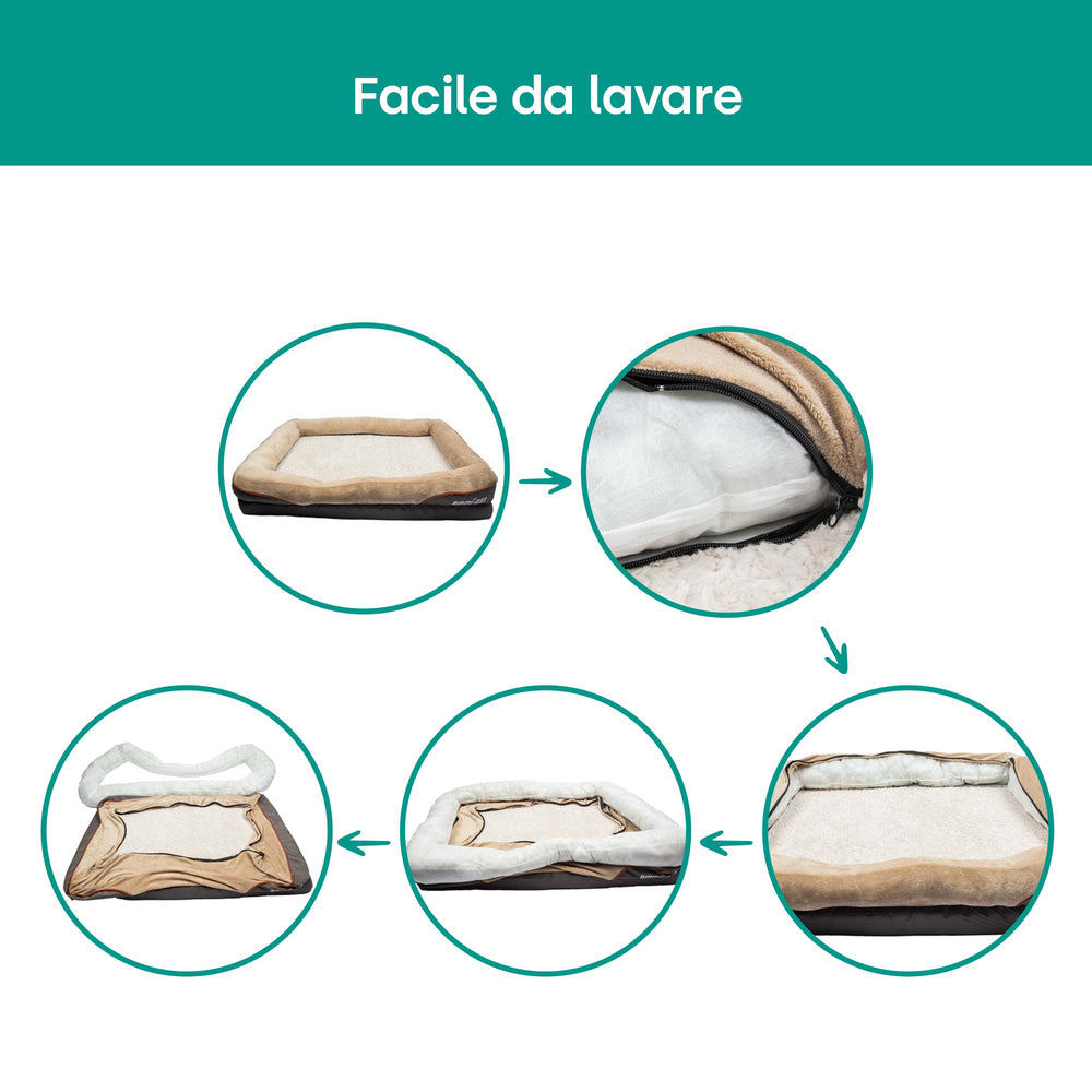 Grazie alla superficie di appoggio ortopedica, la colonna vertebrale e le articolazioni del tuo cane saranno supportate in modo ottimale. Ciò è particolarmente importante per i cani con problemi alla schiena o alle articolazioni, poiché il materasso riduce al minimo i punti di pressione e favorisce la circolazione sanguigna. Il tuo cane adorerà riposare su questa superficie comoda e salutare.
