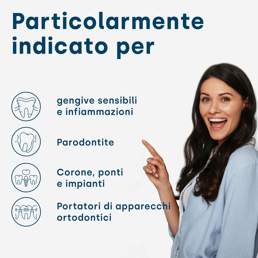 - "Evita le lesioni gengivali grazie all'assenza di abrasione."