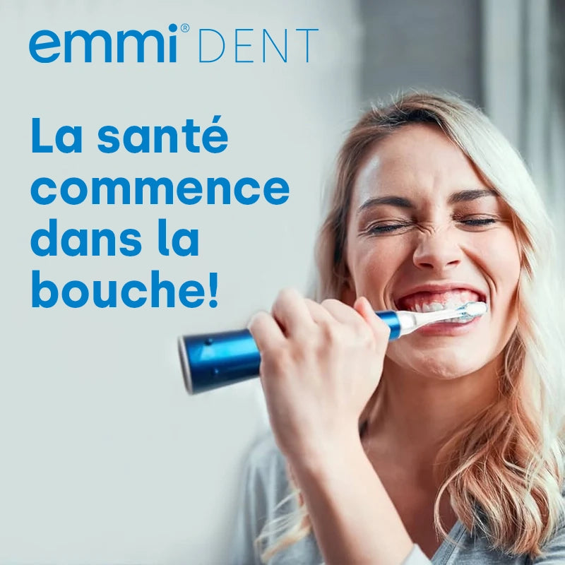 La brosse à dents à ultrasons emmi®-dent offre un effet que vous ne pouvez obtenir avec aucune autre méthode. Les techniques de brossage des dents actuelles fonctionnent sur la base d'un nettoyage dit macro, qui atteint jusqu'à 30 000 vibrations par minute grâce à des mouvements mécaniques. Grâce à la technologie à ultrasons presque sans contact, cette valeur peut être multipliée par trois. Cela permet de nettoyer avec précision même les zones difficiles d’accès. Les ondes ultrasoniques atteignent sans effort même les zones difficiles d'accès, garantissant ainsi une hygiène bucco-dentaire complète . Grâce à la haute fréquence, les brosses à dents à ultrasons sont également idéales pour les soins bucco-dentaires avec des appareils dentaires, des couronnes ou des implants.