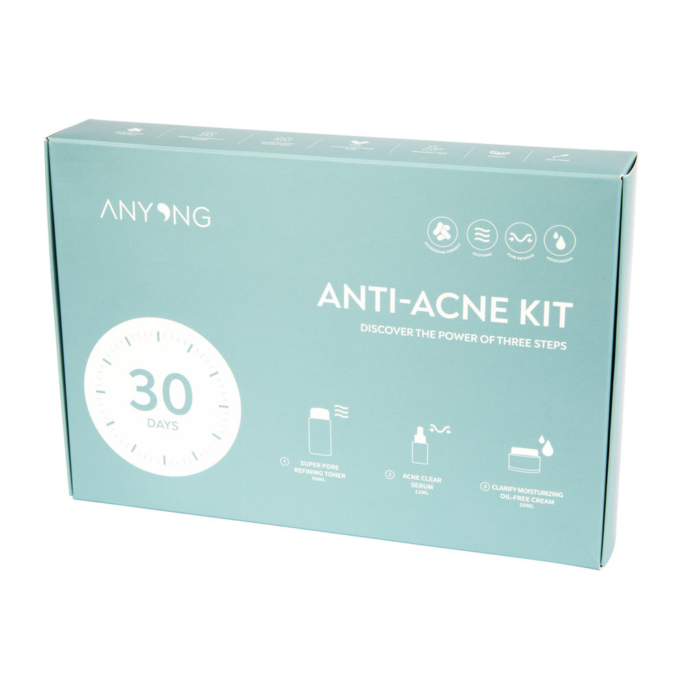 Le kit idéal contre les peaux impures. Le tonique affinant les pores élimine l'excès de sébum, ce qui en fait un préliminaire idéal. Le produit phare pour une peau nette est le sérum Acne Clear, qui contient de l'extrait de cantella et de l'acide azélaïque. Il réagit spécifiquement à vos problèmes de peau et régénère votre peau. L'hydratant sans huile et clarifiant offre une finition douillette.