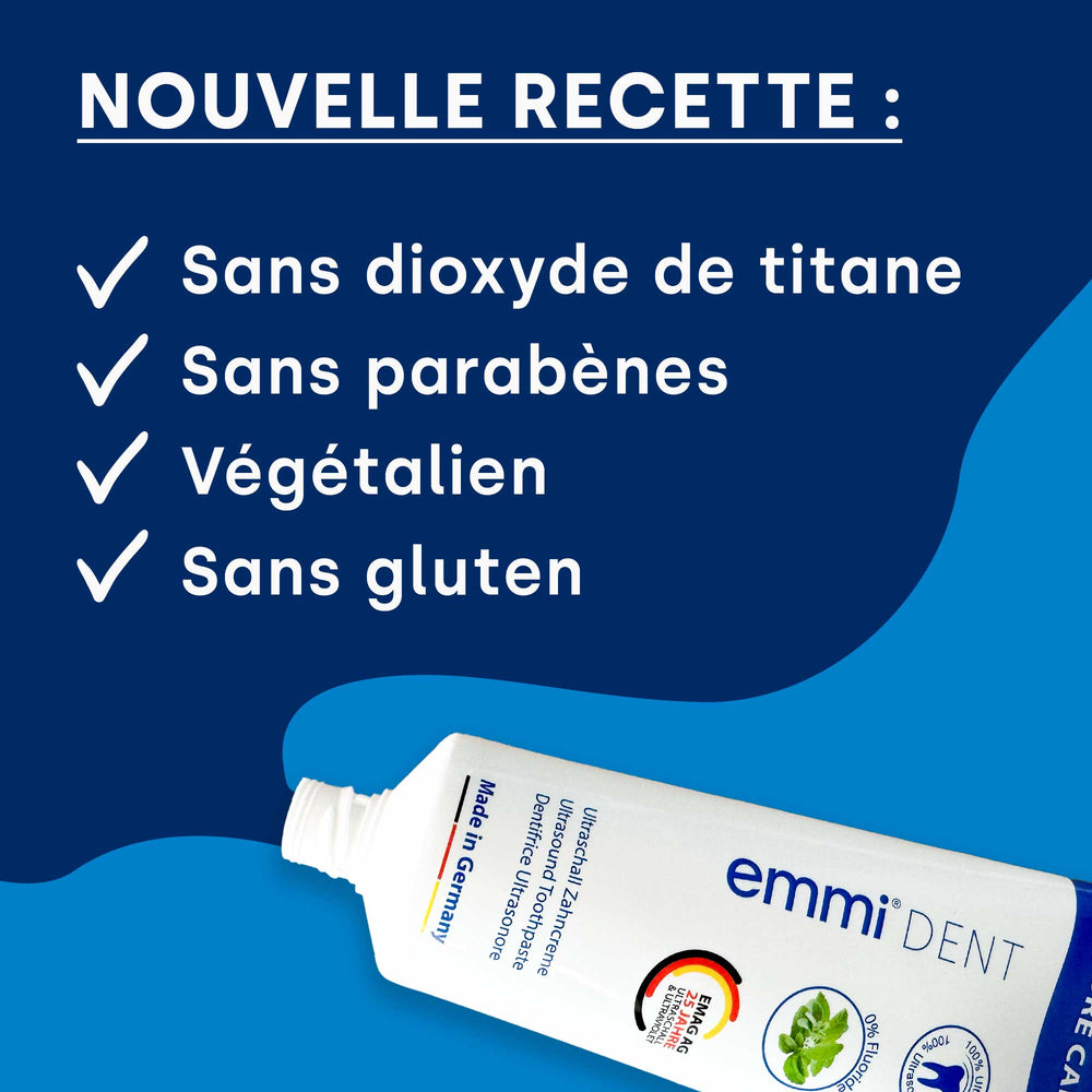 Ne manquez pas l’occasion d’essayer le dentifrice ultrasonique emmi-dent Nature Calcium et de renforcer vos dents naturellement. Commandez dès aujourd'hui et profitez des bienfaits de soins dentaires de haute qualité sans fluor, mais avec la puissance du calcium.