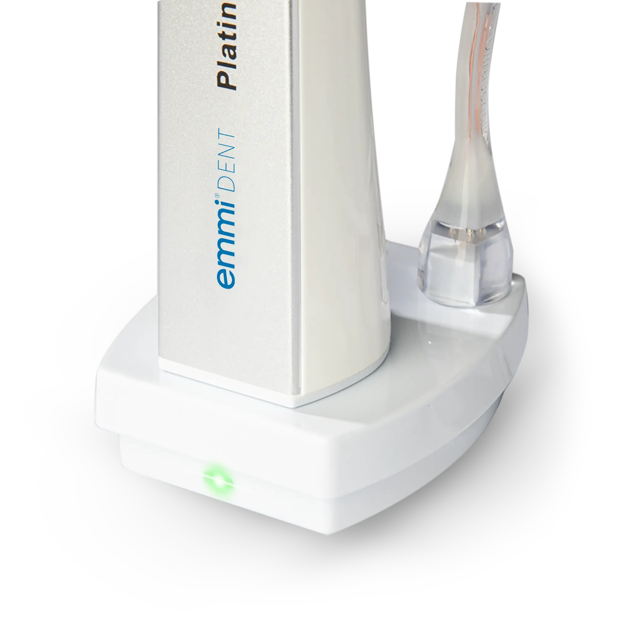 L'emmi-dent Platinum a une durée de vie de la batterie plus longue que ses modèles prédécesseurs. Avec une utilisation régulière 2 à 3 fois par jour, le Platinum peut durer jusqu'à 15 jours avant de devoir être rechargé. Cette durée de vie prolongée de la batterie (lithium-ion) offre commodité et utilisation ininterrompue et élimine le besoin de charges fréquentes.