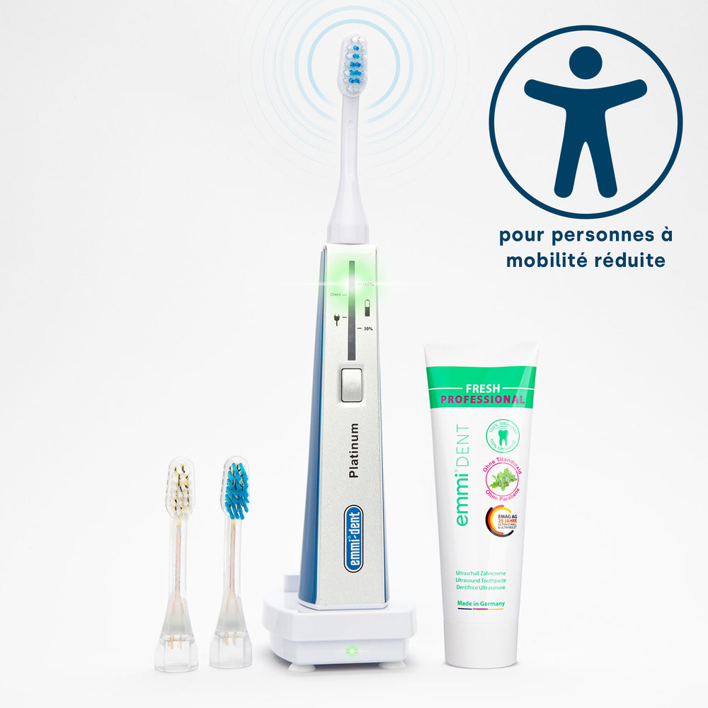 Contrairement à nos autres brosses à dents à ultrasons, notre emmi-dent Platinum Care impressionne par son accessibilité.