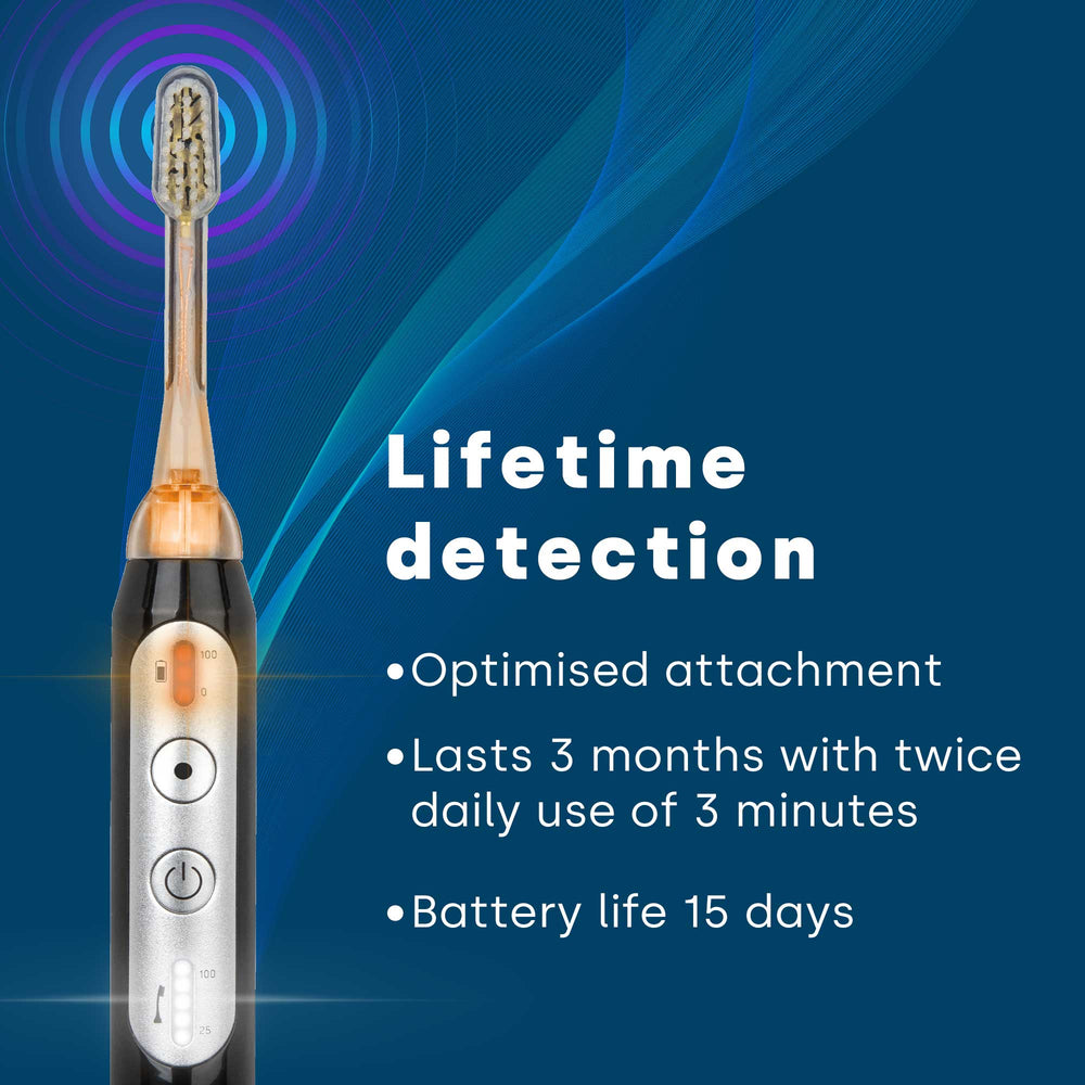 Unsere Ultraschallzahnbürsten sind mit intelligenten Bürstenköpfen ausgestattet, die einen patentierten Piezo-Chip enthalten, um eine herausragende Reinigungsleistung zu bieten und Verunreinigungen sowie Ablagerungen im Mundraum effektiv zu entfernen.